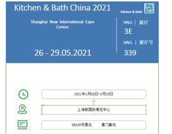 第26屆中國(guó)國(guó)際廚房、衛(wèi)浴設(shè)施展覽會(huì)將于2021年5月在上海拉開(kāi)大幕。廈門集優(yōu)新材料有限公司誠(chéng)邀閣下參觀:上海新國(guó)際博覽中心, 3E339號(hào)展位。